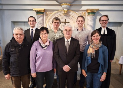 V.l.n.r.: Stefan Raithel, Tobias Gesell, Claudia Sauermann, Inge Kolb, Peter Sell, Alexander Vogel und Jana Thiemt mit Pfarrer Christian Höllerer.